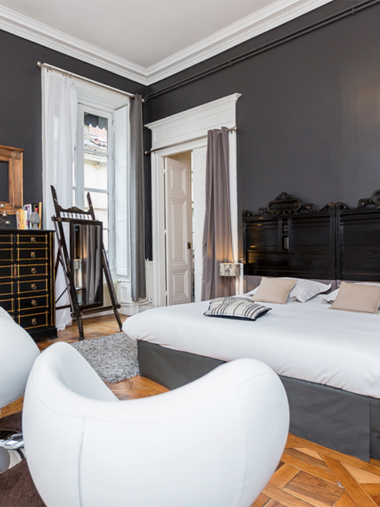 Parquet à la française, hauts plafonds et moulures font tout le charme de cet appartement typiquement lyonnais.
